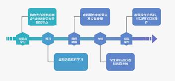 植物光合作用其原理反应是本科生教学中重点教学内容。光合速率测定及光合仪的使用,对本科生的实验技能提升有重要促进作用。但是采用LI-COR-6800光合-荧光全自动测量系统检测植物光合速率,仪器昂贵,在现有教学条件下无法实现;实际操作需要的实验理论复杂且技术步骤多,对于经验欠缺的本科同学而言,失败率高,需多次重复。鉴于上述原因,开发此虚拟仿真项目,对于学生学习植物光合速率测定方法,掌握LI-COR-6800操作方法及数据处理等技术具有重要作用。本项目设计思路如下图: