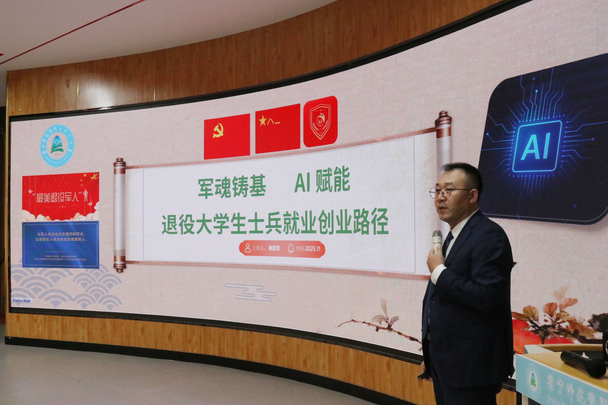 活动现场,乌兰察布市侯素馨就业创业指导师工作室就业创业指导师、beat365在线唯一官网历史文化学院副院长章国军作《军魂铸基AI赋能:退役大学生士兵就业创业路径》专题讲座,深入剖析了当前就业创业市场的新形势与新机遇,重点围绕人工智能技术在就业创业领域的应用展开讲解,为退役大学生士兵拓展就业创业思路、找准发展方向提供了专业指导。