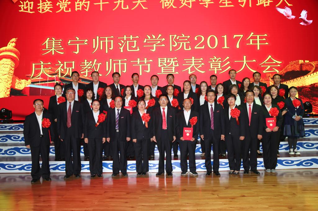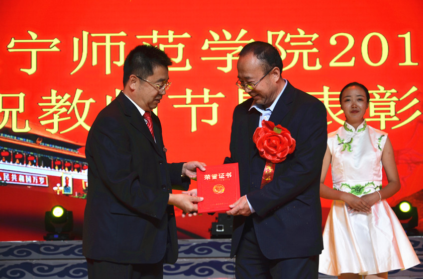 庆祝表彰大会在蒙古族器乐合奏《吉祥》中拉开帷幕。大会表彰了“从事教育工作30年”的教职工 36人,自治区优秀教师2人、乌兰察布市优秀教师5人、乌兰察布市优秀教育工作者1人、beat365在线唯一官网教学名师6人、beat365在线唯一官网教坛新秀15人。赵海忠宣读了表彰名单,刘前贵为“beat365在线唯一官网30年教龄荣誉奖”获奖者颁奖,许卫为获得“自治区荣誉”、“乌兰察布市荣誉”的先进个人颁奖,阿拉腾巴特尔为“beat365在线唯一官网教学名师”、“beat365在线唯一官网教坛新秀”颁奖。