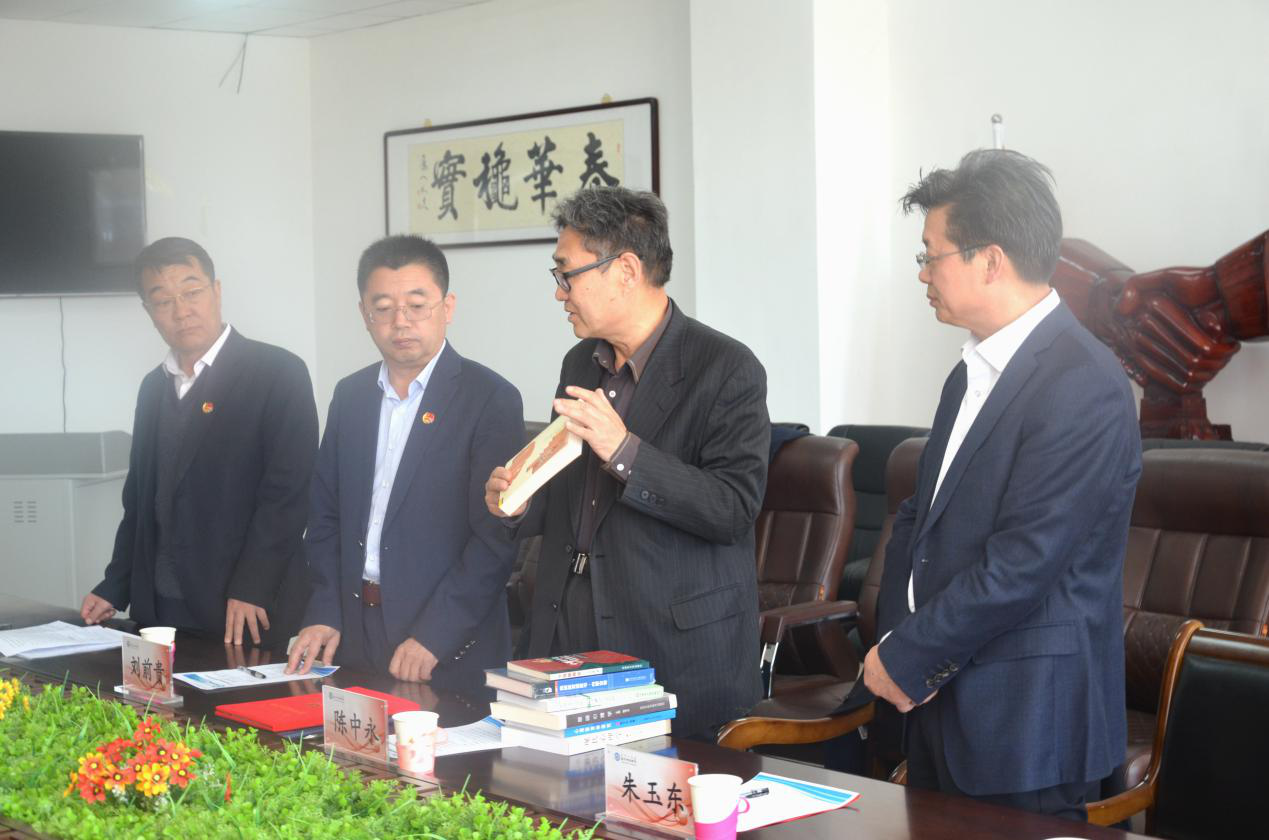揭牌仪式后,刘前贵、朱玉东、许卫代表学校接收了陈中永教授所赠送的书籍。
