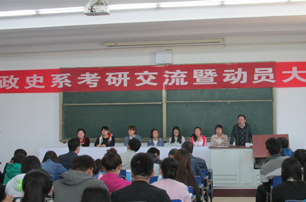 会上,政史系主任杨福和作了动员讲话,对2016年顺利考取硕士研究生的同学表示祝贺,并鼓励2013级学生继承传统,努力学习,在考研路上取得更加辉煌的成绩。