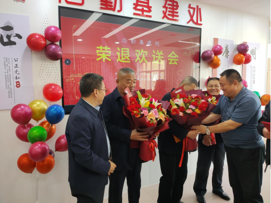欢送会上,常晓华代表学校为退休教职工颁发了荣退证书和纪念品,吴炜介绍了三位老师的工作经历,后勤基建处以献花的形式向三位老同志表达了敬意。大家畅聊共同工作的美好时光,感谢平时在工作上的指导,并表达了对他们退休生活的祝福。