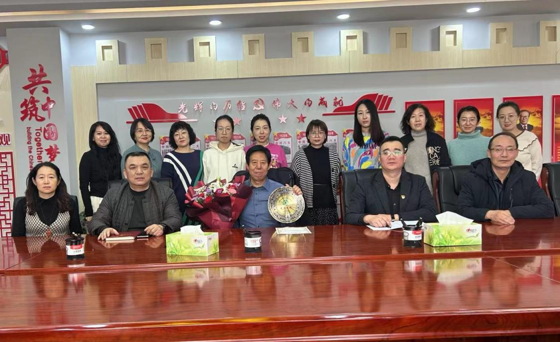 常晓华、马晓玉代表学校向院丕文颁发荣退证书、纪念品和鲜花,与会人员合影留念。