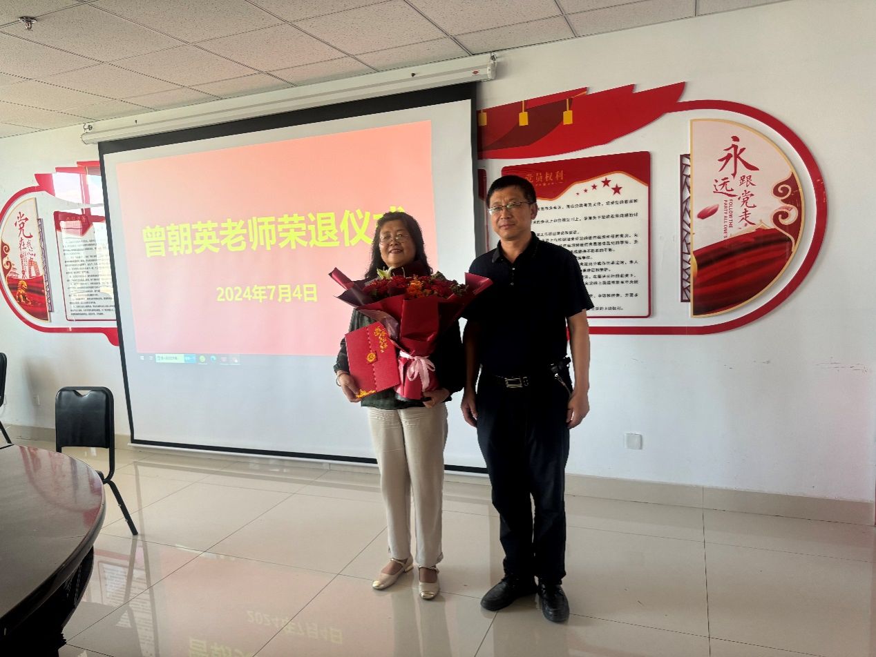 7月4日,我院为退休教师曾朝英举办荣退仪式。学校离退休人员工作处副处长马晓玉、综合服务科科长巩立红和教师工作部(人事处)科长王祯祺出席活动,学院全体教职工参加。仪式由计算机与大数据学院副院长李俊芳主持。