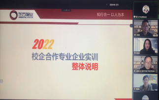 东方智业副总裁柏大雷对本次实训的整体安排行了介绍。教学团队成员以视频方式与师生会面,从实训方式、时间、教学计划、课程内容、实施过程、就业指导、管理规定及要求等方面进行了具体解释和说明,并对学生提出的问题进行了详细解答。