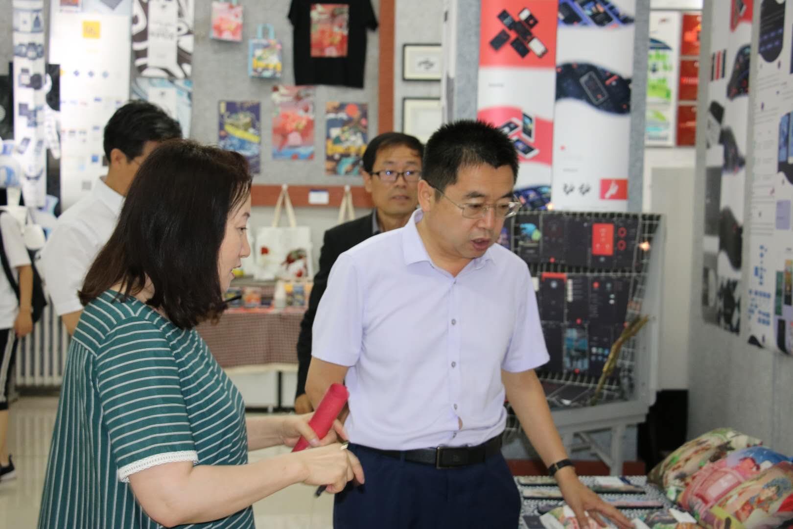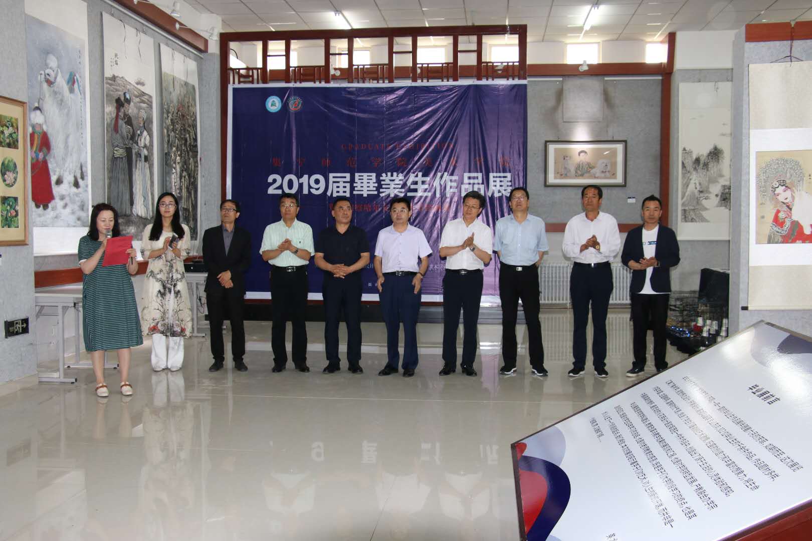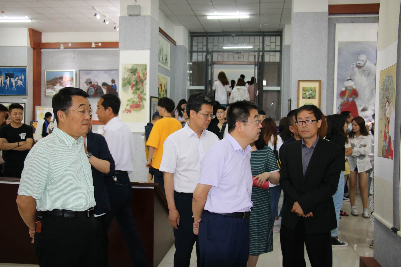 参加展览开幕的领导有:校党委书记刘前贵、校党委副书记校长朱玉东、校党委委员副校长许卫、校党委委员副校长梁政、乌兰察布市书画院院长王永鑫、学生处处长兰立新。美术学院党总支书记焦俊亮、美术学院院长南国栋、美术学院副院长蔚淑英、各位指导教师和全体毕业生。