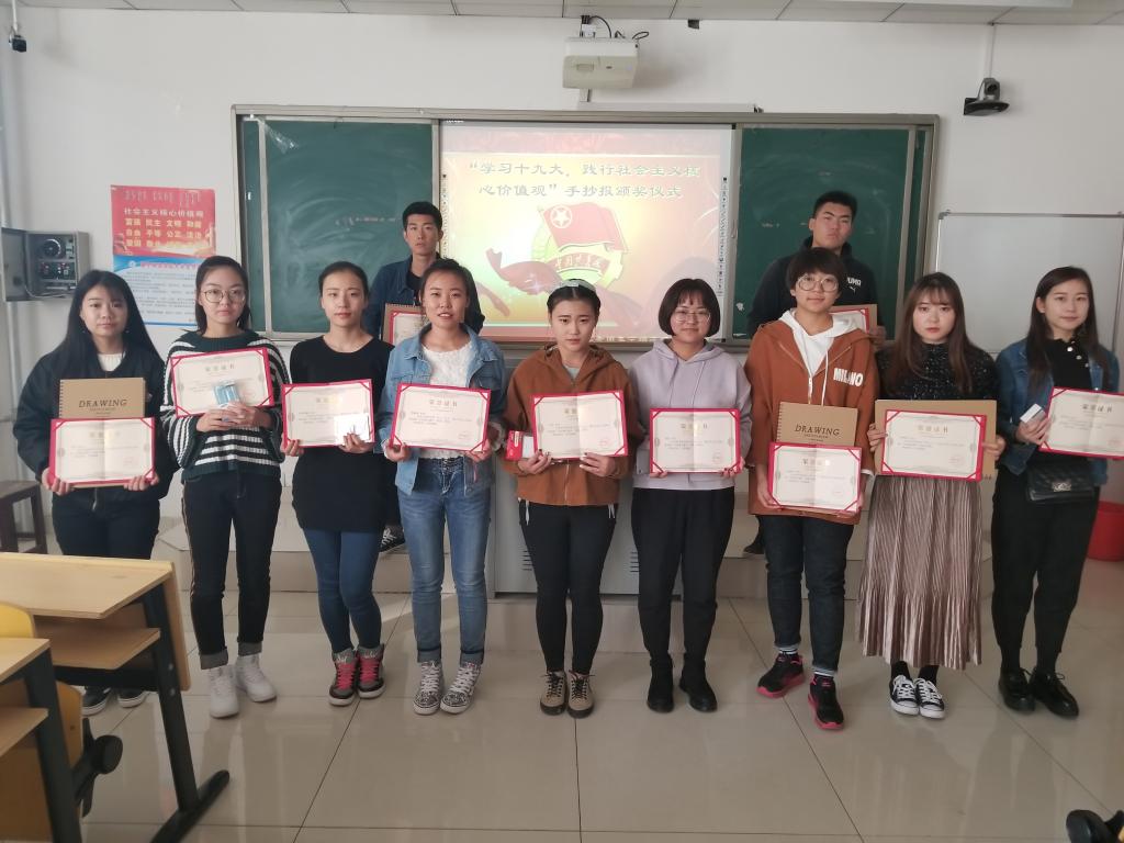 为庆祝中国共产党第十九次全国代表大会胜利召开,并以高度的政治视野和思想觉悟学习十九大精神,为引导广大青年团员听党话,跟党走,树立优良学风、班风,丰富同学们的学习生活,建设和谐文明校园。美术学院团总支于2017年10月23日举办“学习十九大,践行社会主义核心价值观”手抄报展。