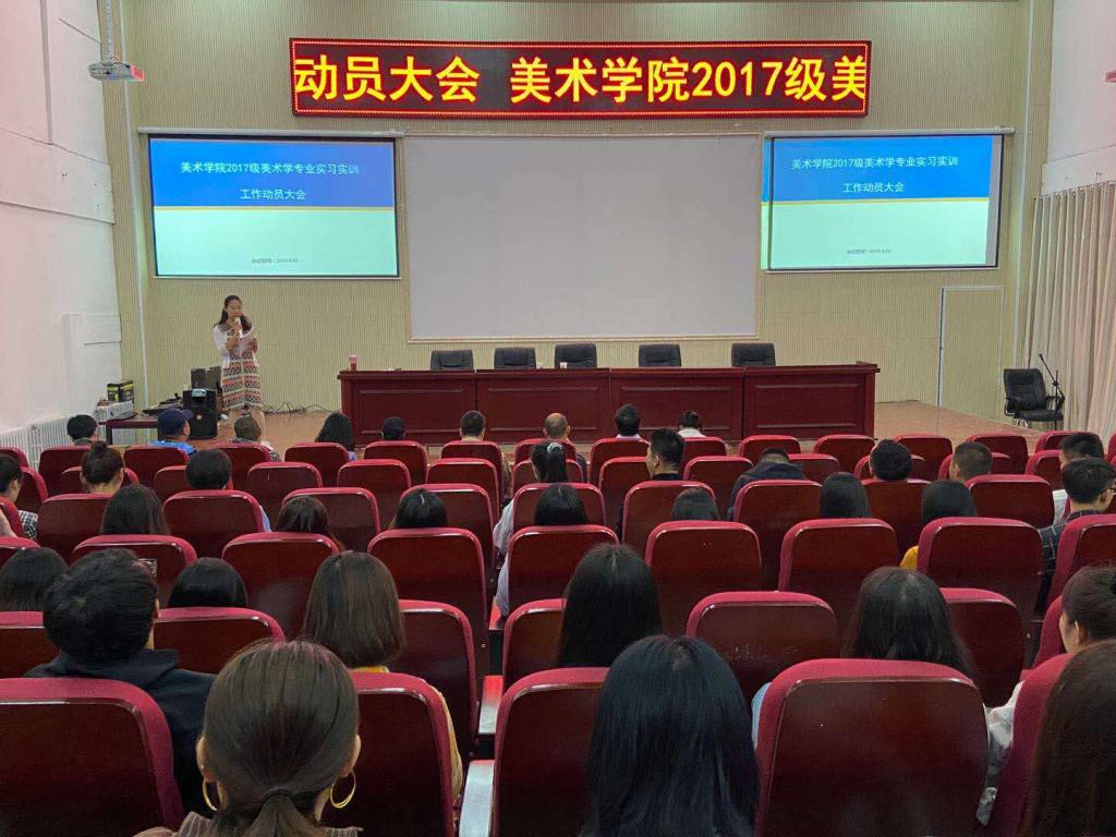 9月2日上午,美术学院在一楼报告厅召开2017级美术学专业全体学生实习实训动员大会,参加会议的有学院相关领导、美术学专业的全体教师和2017级美术学一班全体学生。