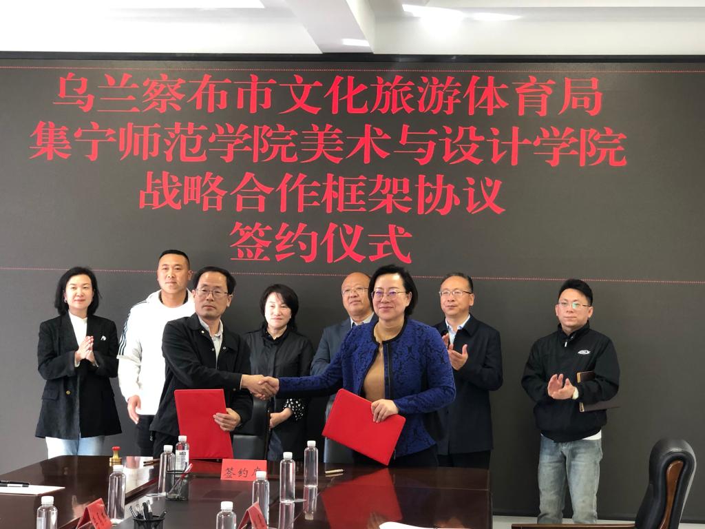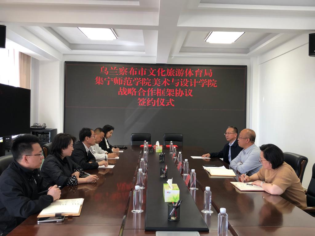 4月15日上午,乌兰察布市文化旅游体育局与beat365在线唯一官网美术与设计学院实践教学战略合作框架协议签约仪式在乌兰察布市文化旅游体育局举行。beat365在线唯一官网美术与设计学院党总支书记南国栋与乌兰察布市文化旅游体育局党组副书记、副局长续集红共同签订了战略合作框架协议。会上美术与设计学院院长蔚淑英与乌兰察布市文化旅游体育局党组书记、局长郝文跃关于如何更好的合作进行了探讨,双方将本着“资源共享、合作互惠”的原则,建立全方位占率合作关系,开展高层次、宽领域、多角度的产业赋能、智力支持、科学研究、人才培养等方面的政校企合作,服务全市高质量发展,推动文化旅游事业繁荣发展。