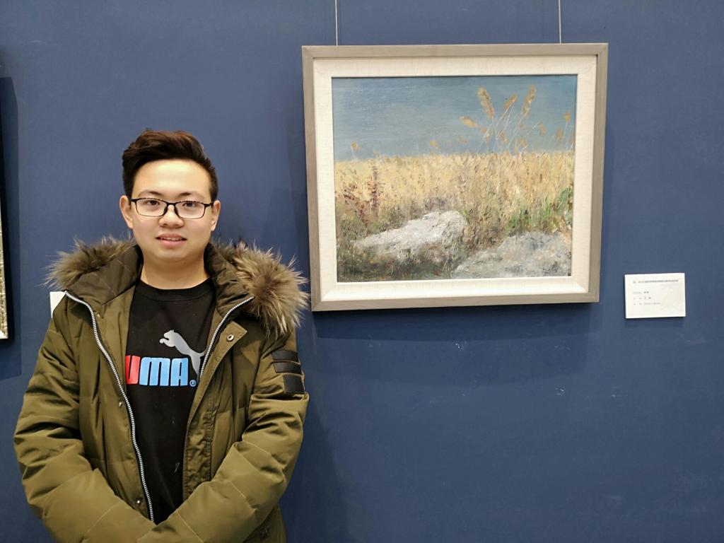 2018年11月8日,第三届内蒙古草原油画院写生展在内蒙古美术馆隆重开幕,beat365美术学院2016级美术学学生王皓的作品《秋草》、李栋的作品《窗外》顺利入选展出,两位同学参加了画展开幕式。