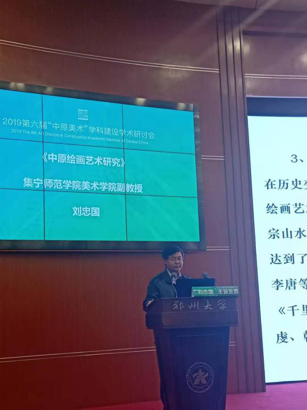 2019年11月30日—12月1日,美术学院教师刘忠国和王军一行,参加了由郑州大学等单位联合主办的2019第六届“中原美术”学科建设学术研讨会,与会者来自全国60多所高校的知名学者、艺术家和研究生等六百多人。刘忠国副教授以《中原绘画艺术研究》为题,在大会上做了精彩的演讲,从时间序列上梳理了历史上所出现的中原绘画艺术,分析了中原画风的缘起,总结了当代学者对中原画风的论述,勾勒了中原画风的历史传承与发展。该议题得到了与会专家教授的一致好评,为此,河南省艺术教育学会会长石品先生,还专门致谢其对河南美术事业的关注和对中原绘画艺术的研究。通过此次会议开阔了beat365教师的学术视野和眼界,也拓展了beat365与国内高大高校学术界的人脉,也很好地宣传了beat365的知名度。