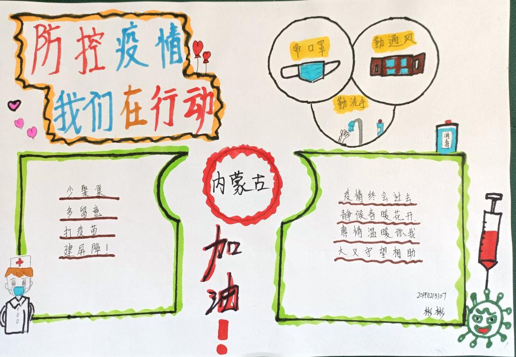 蒙古学学院任课教师乌日娜在讲授《学前儿童创意美术》课程时,将疫情防控融入课程教学、让专业课堂渗透思政教育,并组织学生围绕加强疫情防控的宣传报道、助力深刻认识疫情防控工作的重要性和紧迫性,开展了政治护航、疫情防控、科普宣传、励志加油为主题“疫情防控主题海报创作”活动。20192020级学前教育专业学生加入了这次活动,并提交了百余幅疫情防控主题海报作品,为全国疫情防控工作助力加油。
