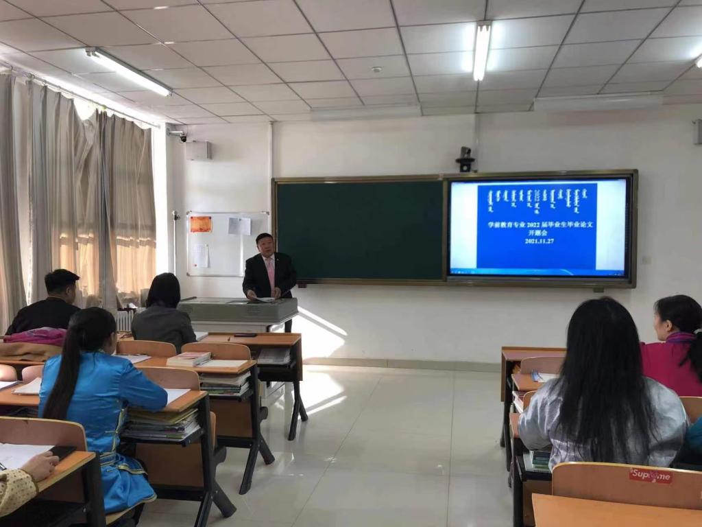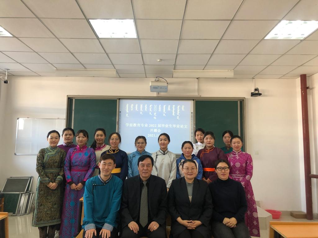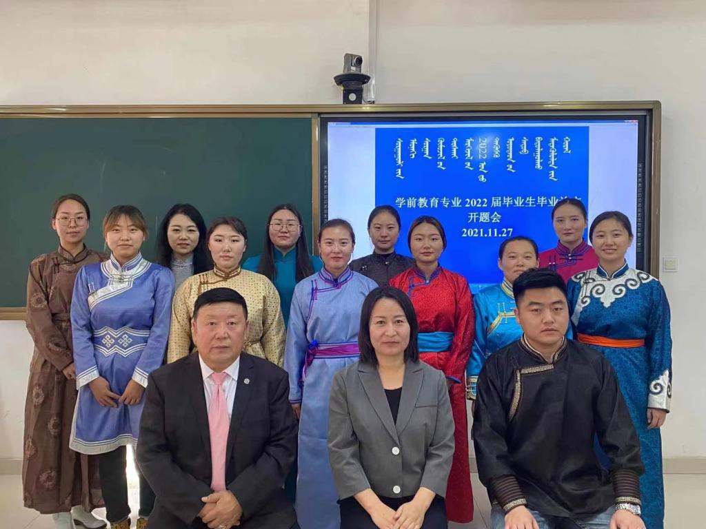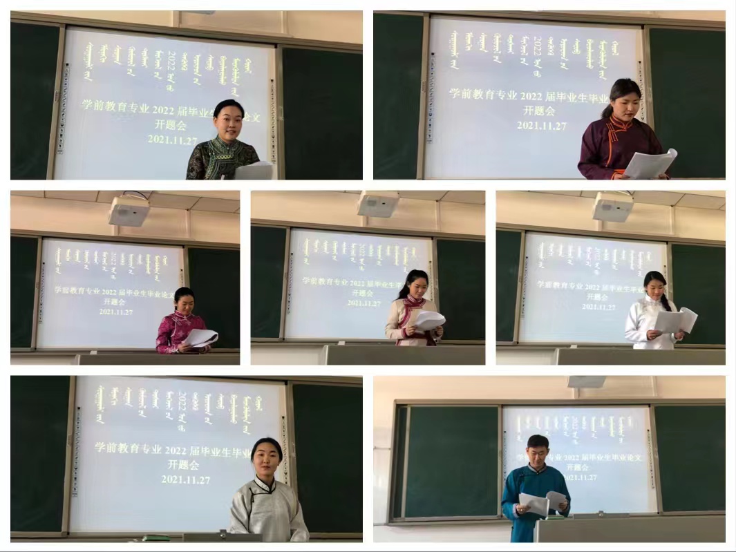 2021年11月27日,我院2018级学前教育专业37名学生在教学楼401、402、403课室召开毕业论文开题报告会。担任本次评委的老师有:图雅老师、吉日格拉老师、查干老师、乌恩其老师、额尔敦其其格老师、朝鲁门老师、达古拉老师、英雄老师、特日格乐老师。