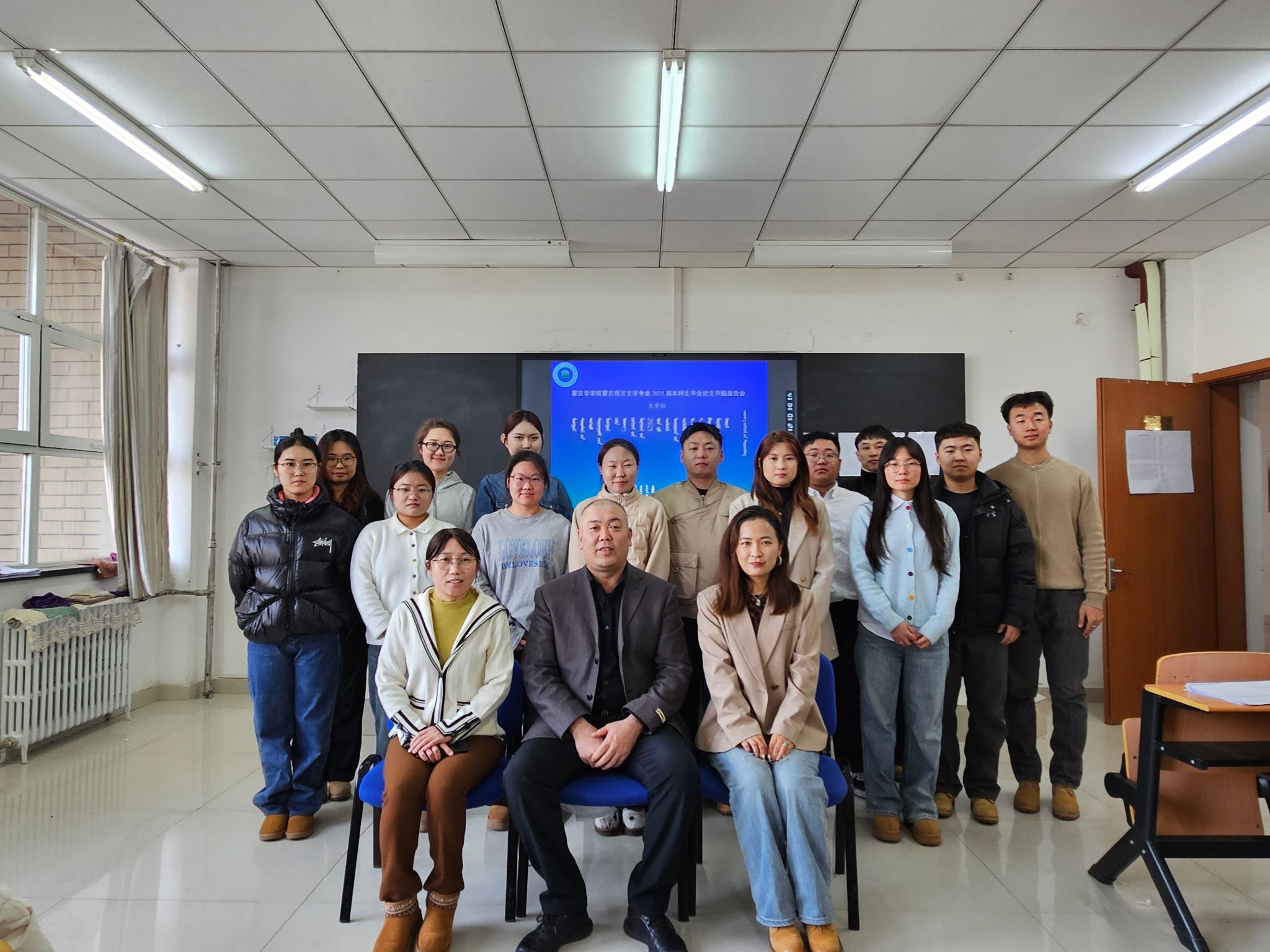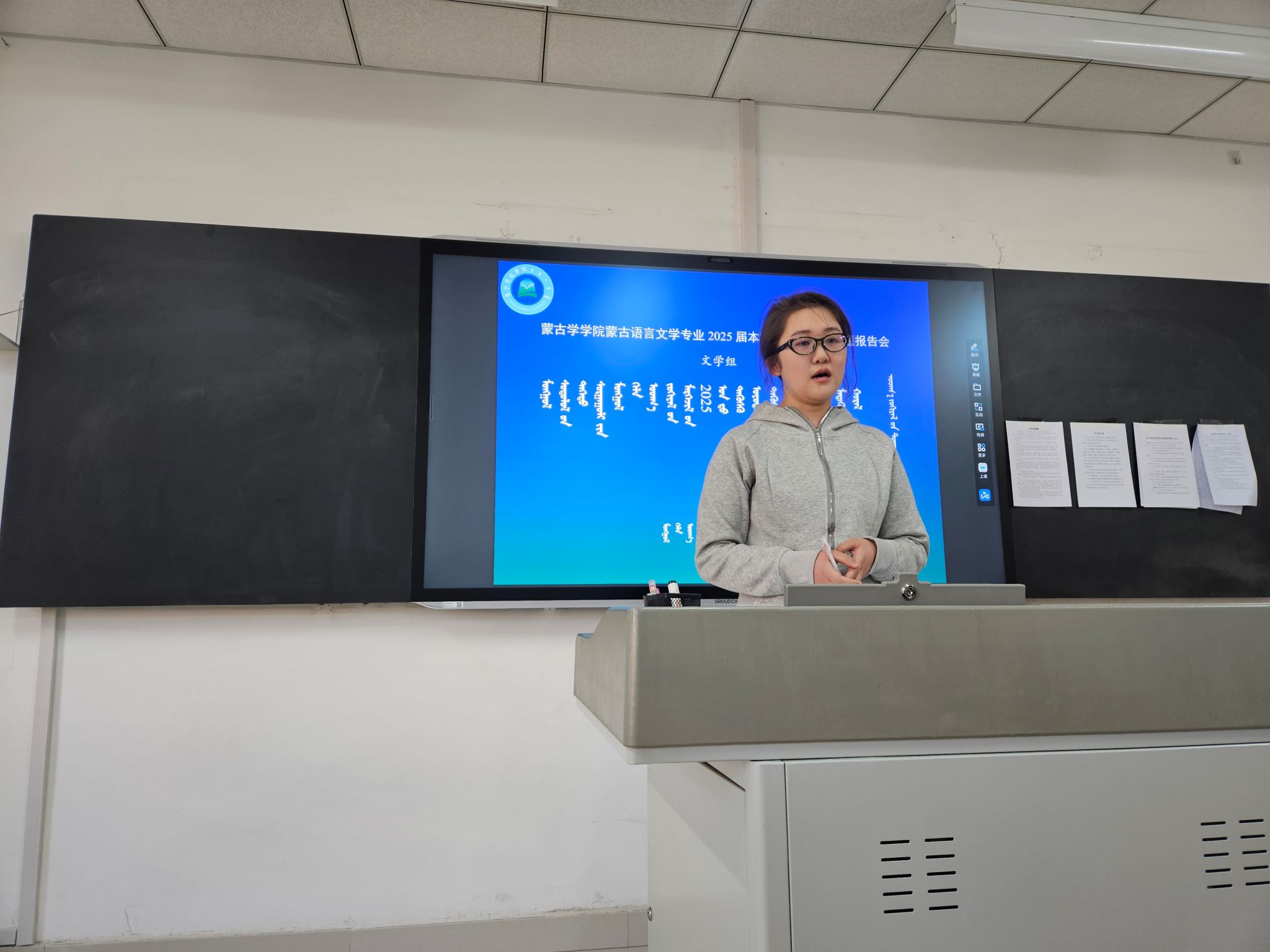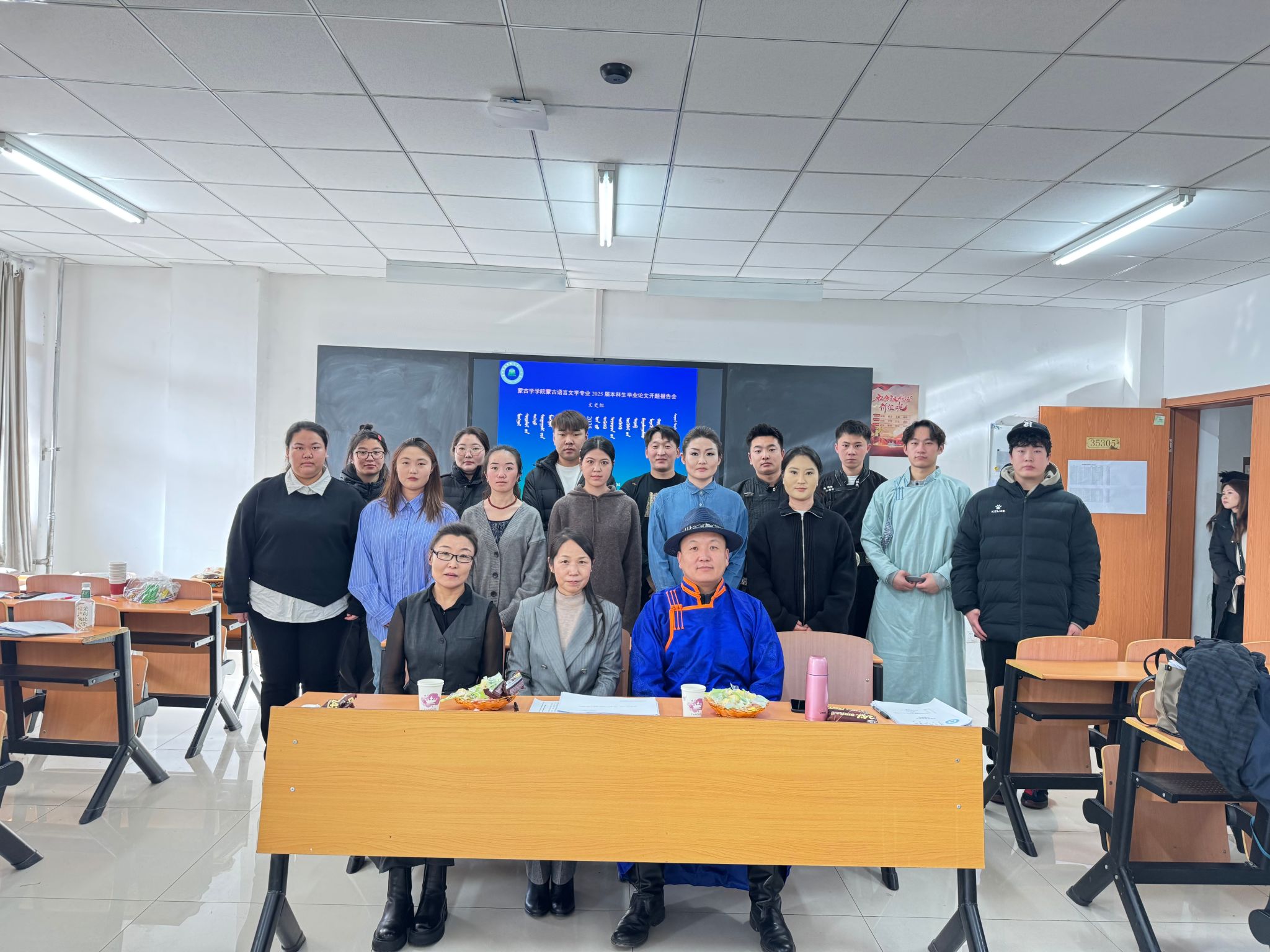 1月4日,蒙古学学院蒙古语言文学系召开了蒙古语言文学专业2025届本科生毕业论文开题报告会。此次报告会分为文学组、语言组、文史组等三组,由满都拉、铁梅、阿拉腾乌拉等三位教师担任组长,共有9位教师参与并担任开题报告评审工作,45名学生参加此次本科生毕业论文开题报告会。