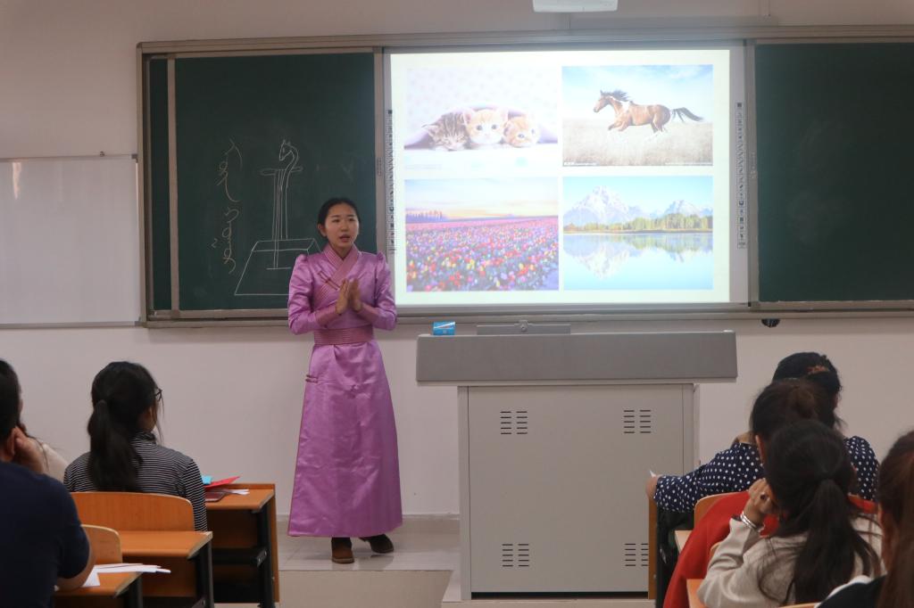 为提高师范生教学技能,展现学生风采,11月30日下午,蒙文系学前教育专业第二届师范生教学技能大赛在蒙文系35402教室举行。蒙文系吉日格拉老师、贺喜格都楞副教授、学前教育教研室主任娜仁图雅副教授、综合教研室主任斯琴格日乐博士及常红梅老师为此次比赛担任评委。