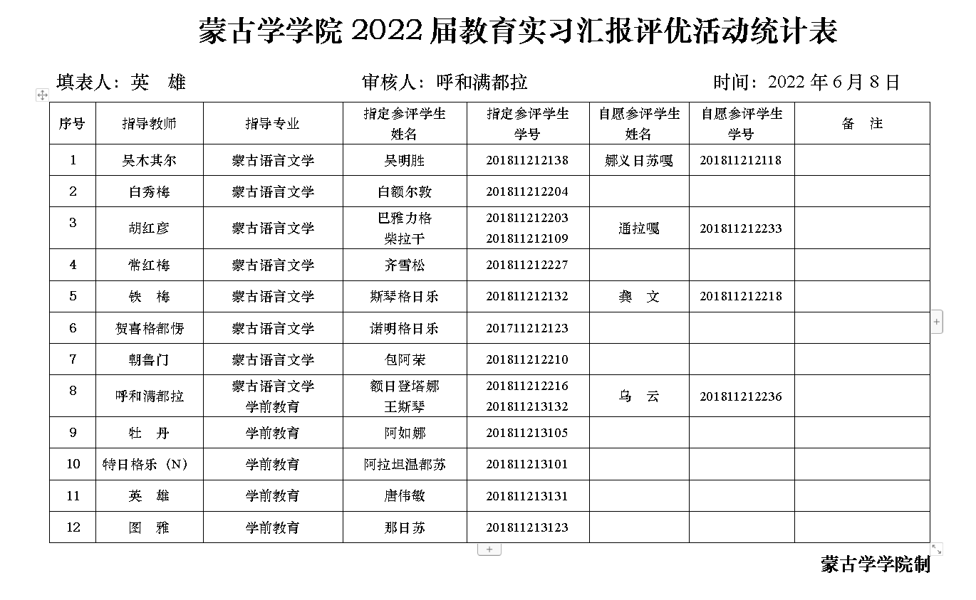 为了检验蒙古学学院师范类专业实习生一年来教育实习效果,提高教育教学水平,促进专业化成长,根据beat3652018级师范生教育实习工作总结要求,学院举办实习归来总结系列活动。现将实习汇报展示课比赛安排如下: