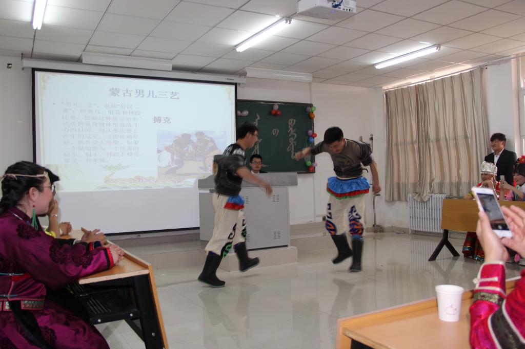 活动共三个环节:蒙古族迎宾礼仪欣赏、各民族民俗风情展示、民族学生代表与师生座谈分享会。汉族、蒙古族、鄂温克族、满族、回族、土家族、达斡尔族学生代表穿着美丽的民族服装,介绍本民族历史文化、服饰文化、饮食文化、民族节日等方面与师生们分享。通过此次活动使民族感情更深厚,更加互相了解、欣赏。成为民族团结,弘扬民族文化,建设和谐美丽校园一道靓丽风景线。