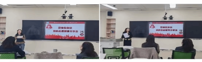 分享会上,由各个班级推荐的7名同学分享了自己的志愿服务故事。同学们利用PPT、视频等形式,讲述雷锋同志的先进事迹和自己的志愿服务故事,感情真切,感染力较强。
