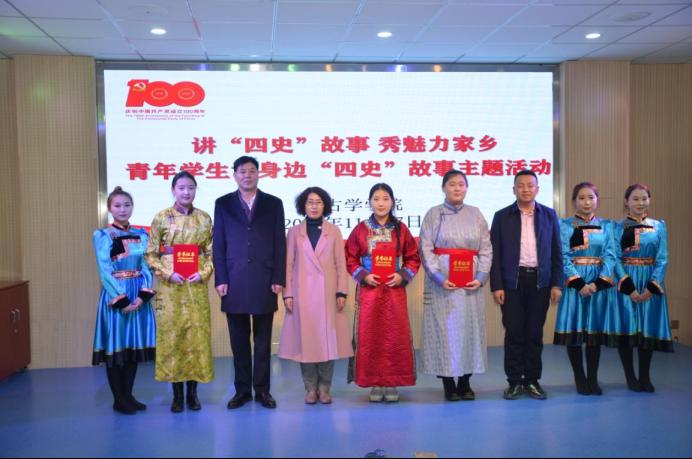 本次活动在我院所有班级中开展,每个班级选出1名优秀代表参加“讲四史故事,秀魅力家乡—青年学生讲身边四史故事”比赛,满都拉格日勒以“草原最美的额吉—都贵玛”、依德尔以“时代楷模—苏和老人”、乌吉斯古楞以“民族团结的使者们”、萨础拉以“全区脱贫攻坚先进个人-白双龙同志”、宋伟玲以“神舟家园-四子王旗”、娜密拉以“身边的榜样—我的妈妈”、瑞冬以“脱贫致富带头人—宝山”、海拉以“民族团结的象征——敖德巴拉的成长故事”、新安达以“家乡三代的变化”、都兰以“小山沟的大英雄”、其勒格尔以“乌拉特草原上第一个马列主义传播者—恩克巴雅尔”、张玲玲以“无悔坚守彰显初心和使命”为题作了演讲。