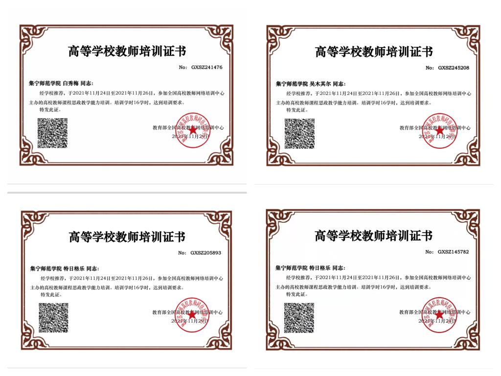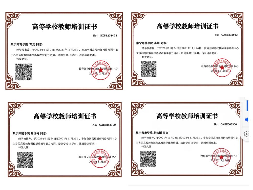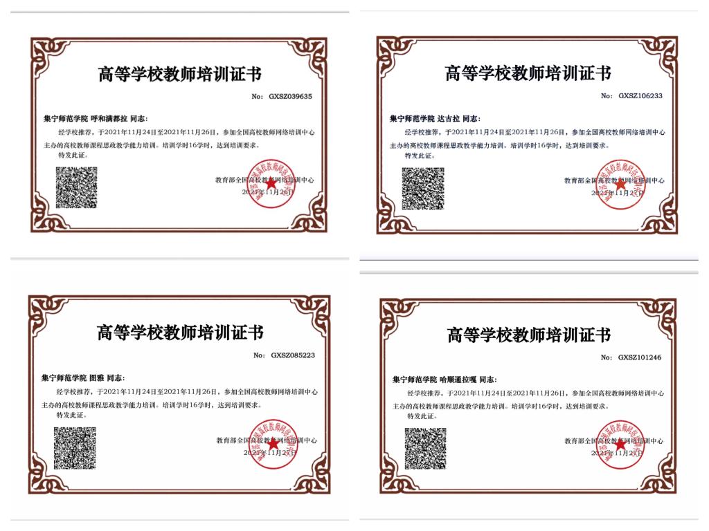 蒙古学学院按照学校相关部门的工作安排,组织全体教职工参加实时线上培训或观看视频回放。16人获得“高等学校教师培训证书”。