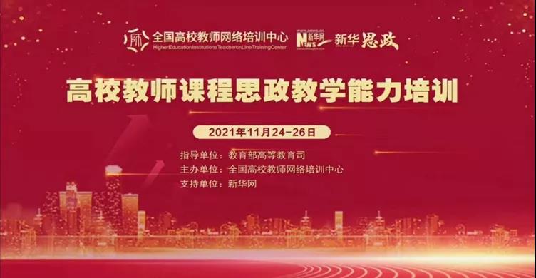 为深入实施《高等学校课程思政建设指导纲要》,进一步提升教师的课程思政教学能力,全面推进高校课程思政高质量建设,11月24日至26日,高校教师课程思政教学能力培训在北京举行。此次培训由教育部高等教育司指导,全国高校教师网络培训中心与新华网联合举办,旨在全面落实立德树人根本任务,着力提升高校教师课程思政教学能力,努力培养广大高校教师成为学生“为学、为事、为人”示范的“大先生”。