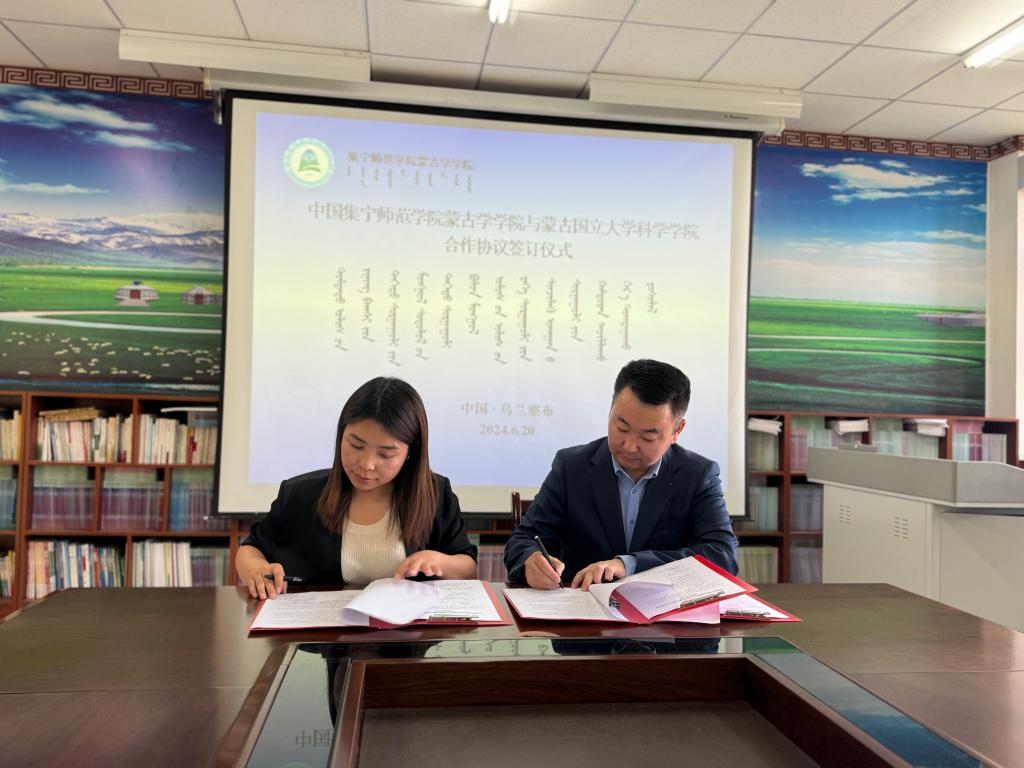 讲座结束后,在蒙古学学院二楼会议室,举行了beat365在线唯一官网蒙古学学院与蒙古国立大学科学学院合作协议签订仪式。蒙古国立大学科学学院院长扎雅巴特尔教授、蒙古国立大学科学学院教师吉布呼楞,内蒙古师范大学教授瓦·斯钦,蒙古学学院党总支书记额尔敦其其格、院长孟美英及科级以上干部参加仪式。签约仪式上,双方就两校及学院基本情况进行介绍,围绕协议内容对下一步合作项目进行了深入探讨。蒙古学学院院长孟美英与蒙古国立大学科学学院院长扎雅巴特尔教授分别代表学院,签订合作协议书。