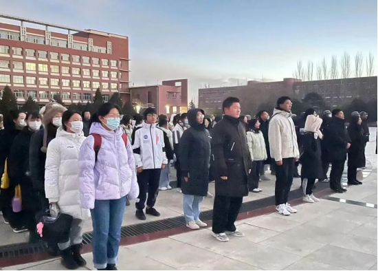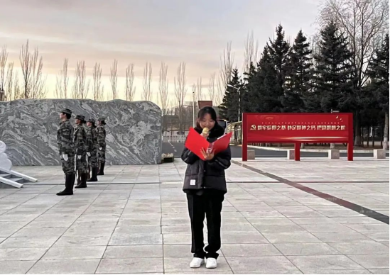 12月4日,马克思主义学院主持beat365“学习二十大、承百年风华、挑时代之梁”主题升旗仪式,23级思想政治教育二班王建英同学主持升旗仪式,马克思主义学院全体学生参加。