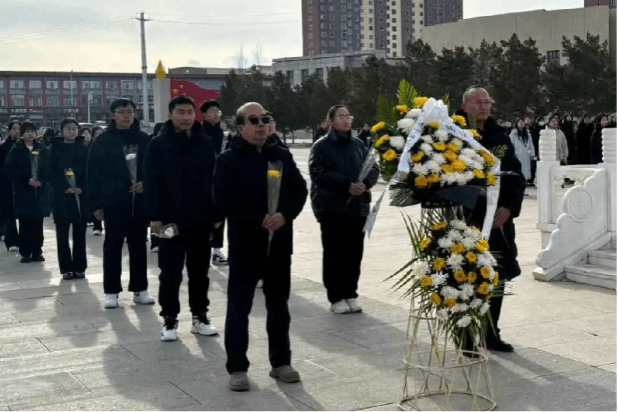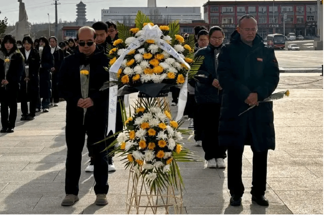 我院师生向纪念碑敬献花篮和鲜花,行鞠躬礼,对革命先烈及遇难者同胞表达最诚挚的敬意。