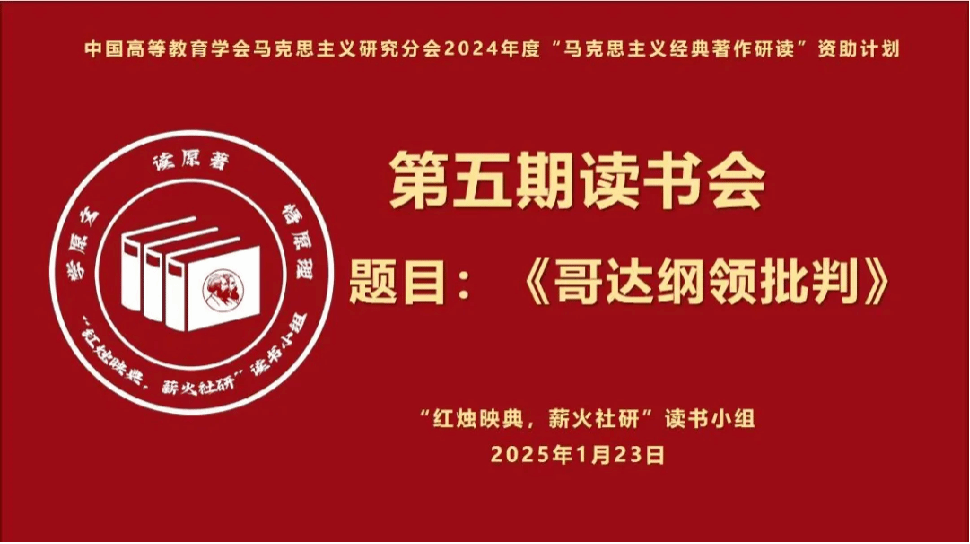 2025年1月23日下午,中国高等教育学会马克思主义研究分会2024年度“马克思主义经典著作研读”资助计划支持小组——beat365在线唯一官网“红烛映典,薪火社研”读书小组第5期读书会于线上进行。本次读书会阅读内容为《哥达纲领批判》,指导教师成格乐图和读书小组全体成员参会,读书小组组长白少宇主持。