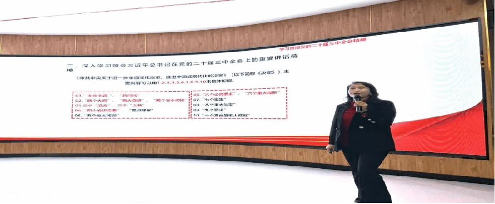 晓荣老师从“深刻领会进一步全面深化改革、推进中国式现代化的重大意义和总体要求”“深刻领会进一步全面深化改革、推进中国式现代化的系统部署”“深刻领会进一步全面深化改革、推进中国式现代化的根本保证”等多个维度,深入浅出地对党的二十届三中全会精神进行解读,同时结合具体生动的案例让同学们深刻认识到全面深化改革对于国家发展的重要性,以及实现中国式现代化的美好前景和艰巨任务。