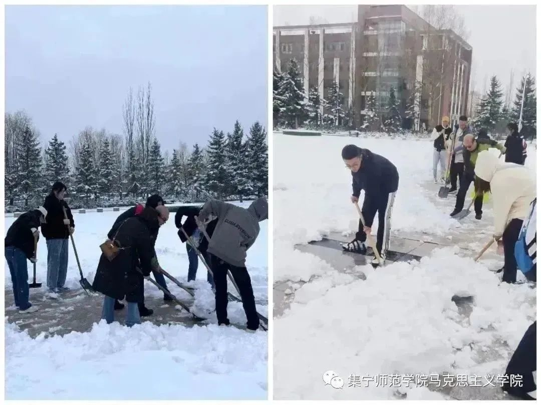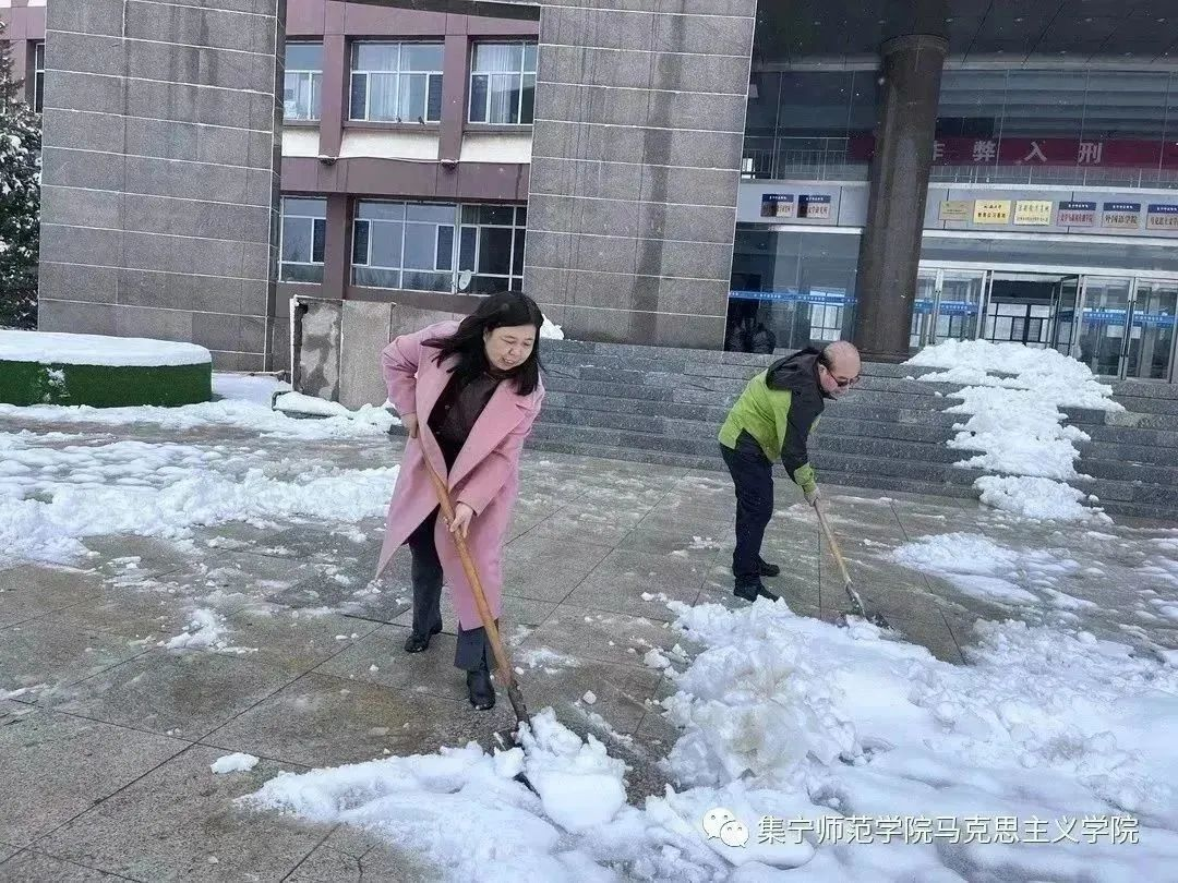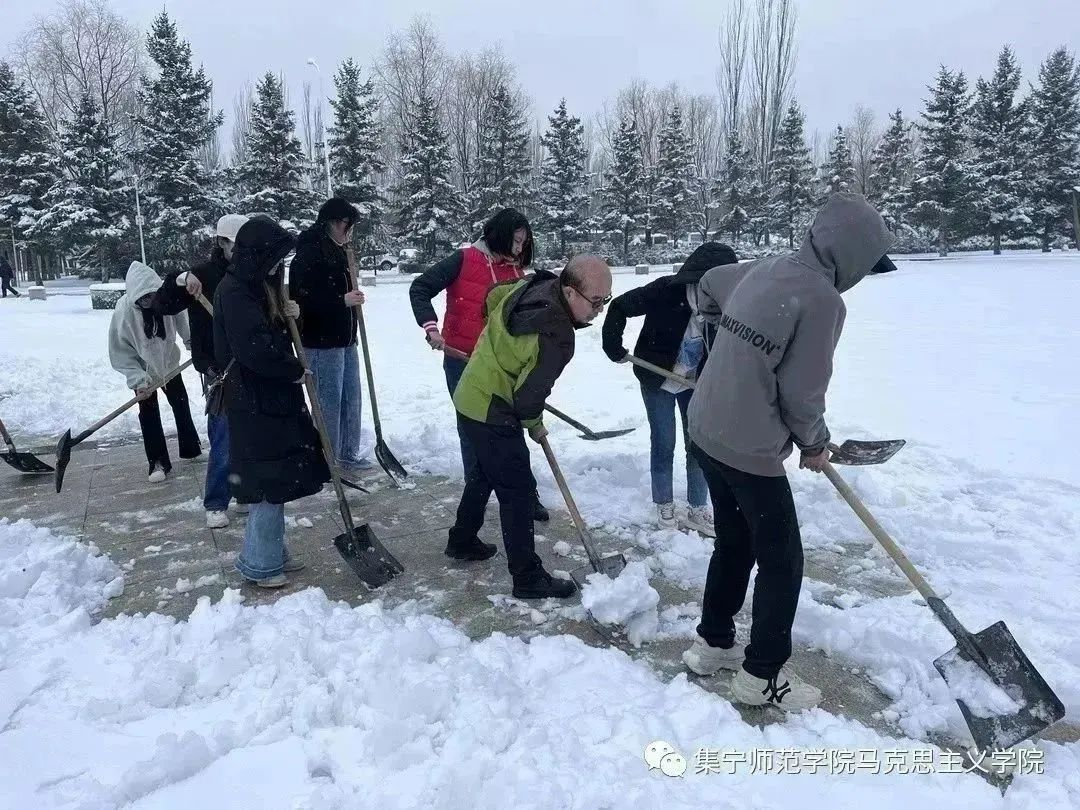 4月3日,我市迎来强降雪天气,持续的降雪将校园装扮得银装素裹,瑞雪在装点美景的同时也影响着我们学校的正常活动。为减少本轮雨雪冰冻天气对广大师生教学、生活造成的不利影响,马克思主义学院全体师生积极响应学校号召,于4月4日组织开展了“我为群众办实事”实践活动暨“我是共青团员我帮你”志愿服务活动。