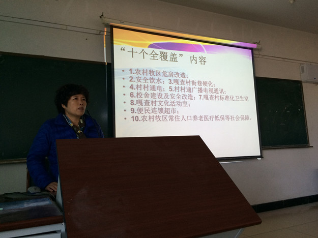2015年9月23日—24日,思政部主任刘嵘参加了由自治区高校工委、教育厅主办的赴包头观摩考察农村牧区社会事业“十个全覆盖”工程。按照教育厅部署,中秋、国庆小长假结束后,刘嵘老师即刻开展了系列宣讲活动,先是在思政部全体教职工会议上畅谈了此次观摩活动的体会,接着在《毛泽东思想和中国特色社会主义理论体系概论》、《形势与政策》课堂上,结合赴包头观摩考察实际讲授了“十个全覆盖”工程提出的背景意义及现阶段取得的成就。一幅幅图片、一组组数字,使beat365大学生对自治区党委政府提出的“十个全覆盖”工程有了更加全面深刻的理解。