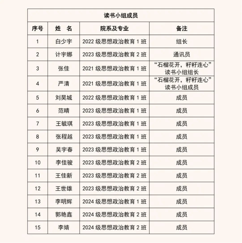 “红烛映典,薪火社研”读书小组成员名单