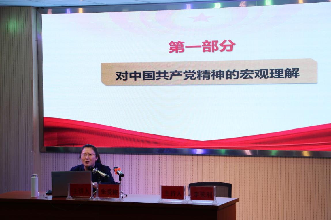 培训邀请马克思主义学院张爱梅老师以“赓续红色精神 开拓时代新境界—解读中国共产党精神谱系”为题作了专题讲座,张老师从对中国共产党精神的宏观理解、中国共产党精神谱系初步构架、中国共产党精神谱系的特点和时代意义三个部分作了全面讲述。张老师就如何把握中国共产党精神的科学内涵、中国共产党精神的主要来源是什么、怎样正确理解中国共产党精神谱系的五个主要组成部分,中国共产党精神谱系的特点和时代意义有哪些等方面作了全面细致、生动精彩的讲述。
