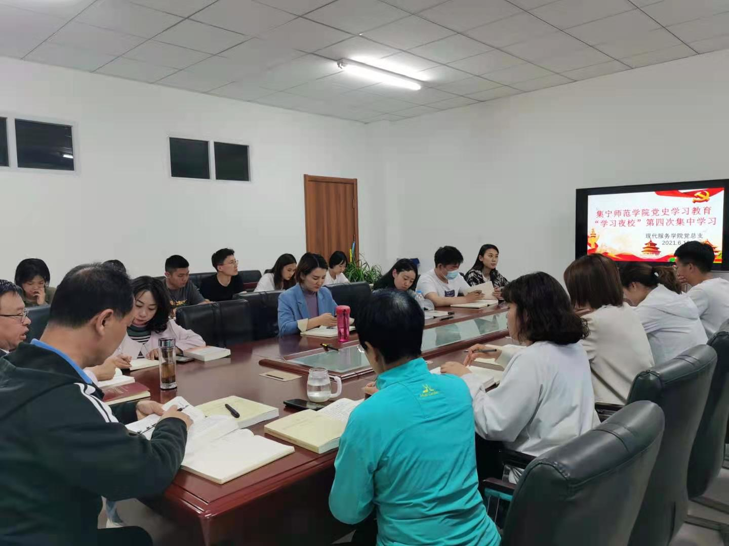 按照学校党委关于党史学习教育的安排部署,6月10日晚,beat365在线唯一官网组织开展党史学习教育 “学习夜校”第四次集中学习。现代服务学院党总支组织教师党员及学生党员集中学习。