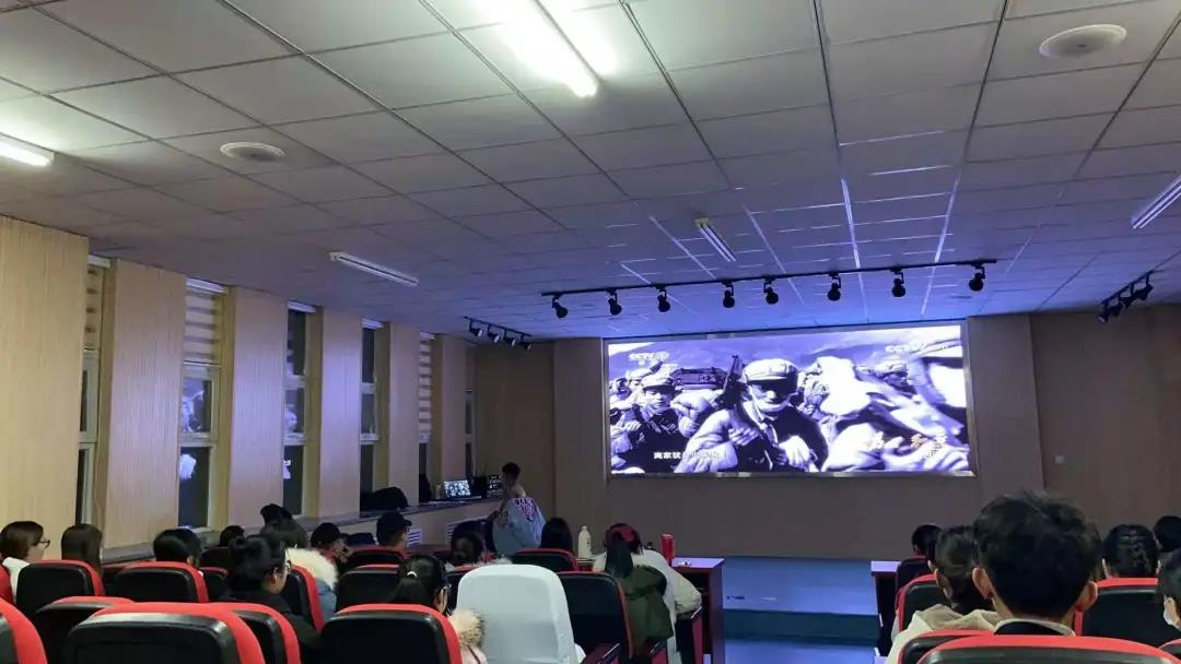 现代服务学院副院长武俊芳老师带领同学们观看了爱国主义教育影片,武老师说:“这些是中国先进文化的代表,是传承民族精神的纽带,是启迪美好心灵的火炬,对塑造民族文化、弘扬正气有着重要的意义。”