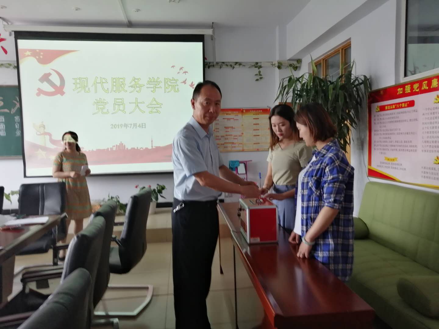校党委组织部副部长刘晓霞、现代服务学院党总支全体党员参加会议,现代服务学院教师代表列席会议。会议由现代服务学院党总支书记黄中主持。