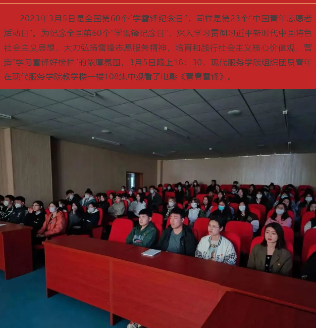 学习雷锋精神、感受无私奉献丨现代服务学院组织团员青年观看影片《青春雷锋》