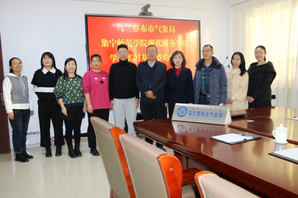 乌兰察布市气象局任福江局长领导班子参加了签字仪式。任局长对近期学生实习和录制节目表示非常满意,希望更多学生走进气象局,成为一名气象播音员。