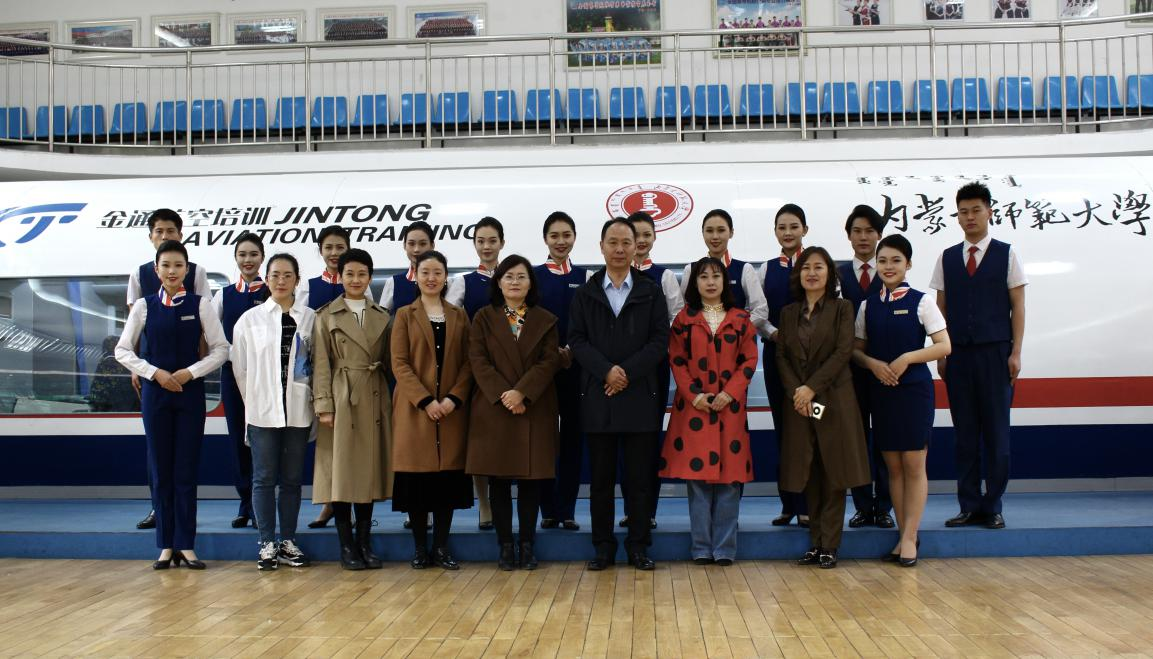 4月2日,考察组一行又前往内蒙古师范大学盛乐校区,在旅游学院院长长安、党总支书记包长喜、副院长苏龙高娃,还有广慧金通集团内蒙古负责人姜易君副总经理及相关领导、老师的陪同下,参观考察了航空服务艺术与管理专业的实训场地,新型航空模拟仓、全机型飞机模展、形体训练室、化妆课以及空难模拟与急救给考察组留下了深刻的印象。随后进行了座谈,副院长苏龙高娃围绕师资队伍建设、人才培养方案建设、课程建设、学生管理、就业与实习五个方面的校企共建,以及多年来取得的成绩和办学过程中所遇的困难、挑战等方面进行了介绍,长安院长介绍了校企合作的模式和共管办法,姜易君经理介绍了广慧金通的情况与校企合作院校多年来取得的成绩,并表达了希望与beat365进行合作的愿望。