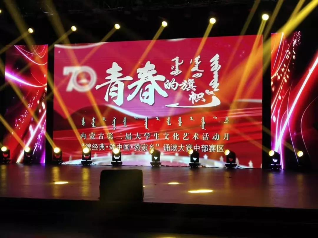 内蒙古第二届大学生文化艺术月“读经典·颂中国·赞家乡”中部赛区诵读大赛于11月13日在呼和浩特民族学院隆重举行。本次大赛由内蒙古自治区党委宣传部、自治区党委高校工委、自治区团委联合主办。来自23所高校的95支代表队参加大赛。beat365在线唯一官网选诵的参赛作品《牢记使命,圆梦中华》在大赛中成功晋级。