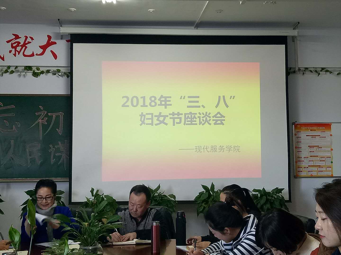 阳春三月,万物复苏,到处洋溢着浓浓的春意。为纪念“三•八”妇女节,让全体女教职员工过一个快乐、温馨的节日,以放松身心、陶冶情操,促进了解与交流,增强教职工队伍的凝聚力,现代服务学院于3月8日下午,召开了“三八妇女节”座谈会。