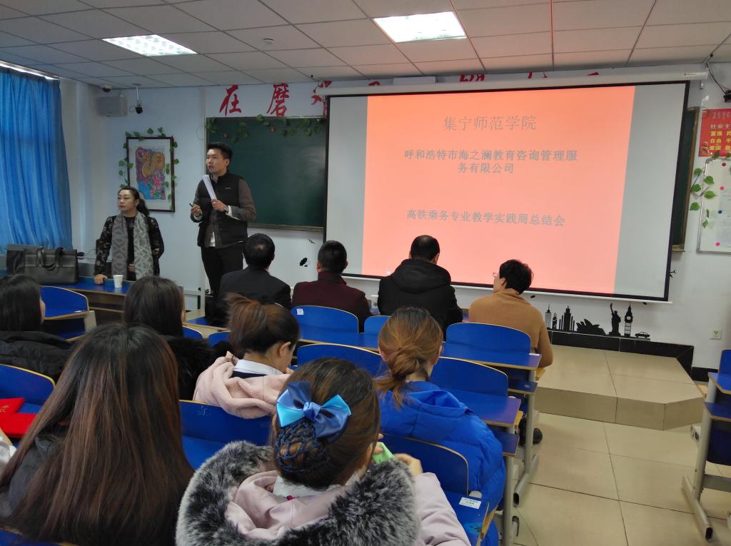 关于现代服务学院高铁乘务专业与呼和浩特市海之澜教育咨询管理服务有限公司教学实践周总结大会