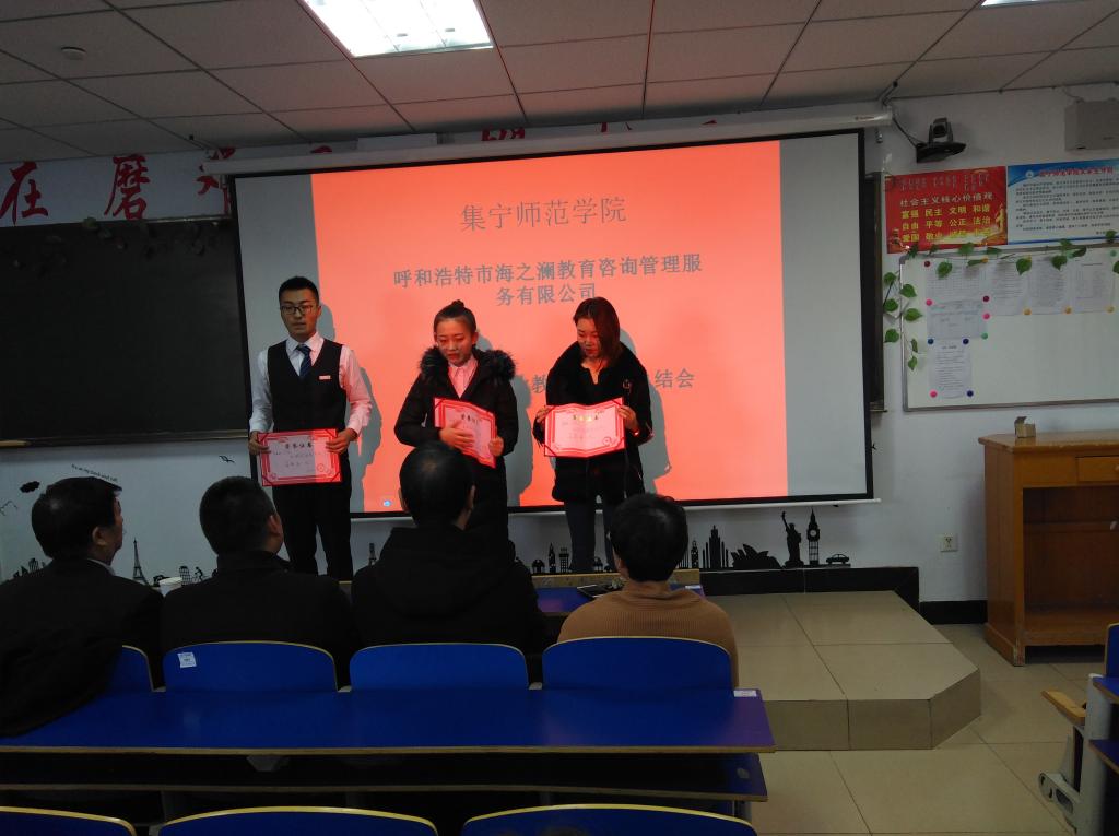 会上,由公司袁玉升总经理对实践周作出总结,对学生们一周的表现指出了不足并提出希望。教学部主任王照那木拉老师宣读了本次实践周各班前三名的名单,各位领导为获奖学生颁发了荣誉证书,获得奖励的同学同时也获得了本年度冬令营的机会。