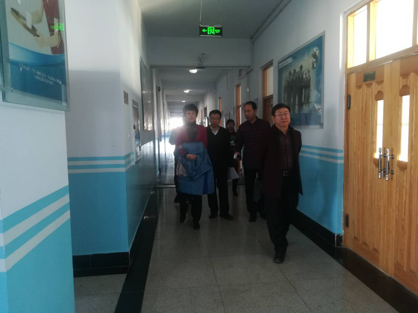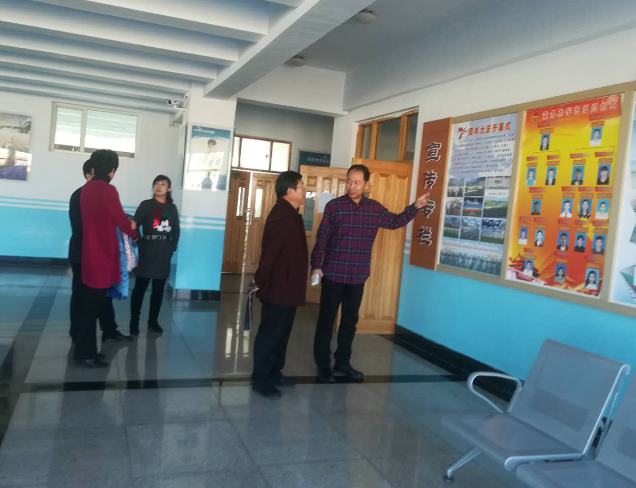 座谈会后,黄中、王汉君、武俊芳陪同张书记一行参观和查看了乘务系的党员活动室及学生活动图片展。