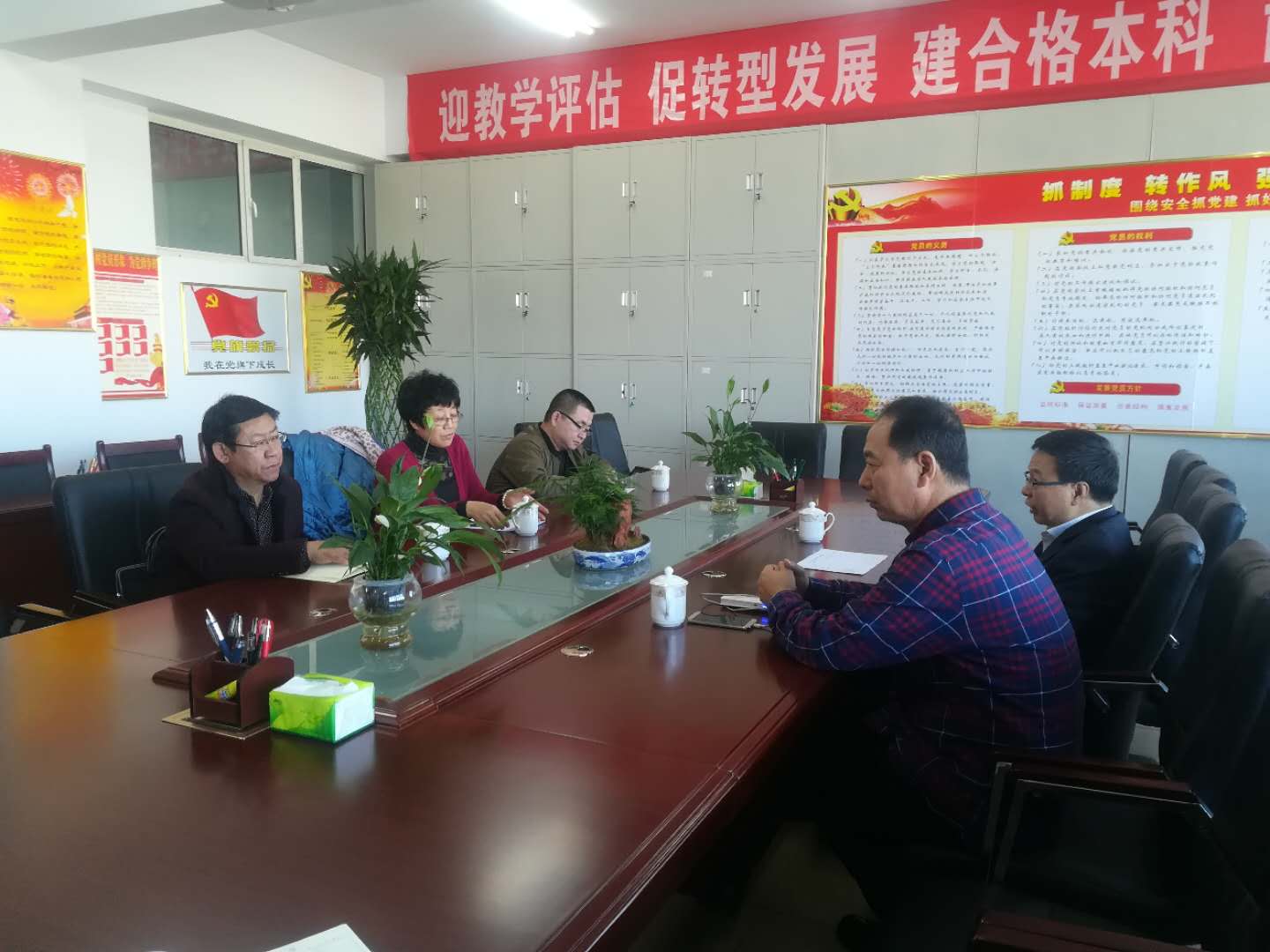 2017年12月5日下午,beat365在线唯一官网党委副书记、纪委书记张利平、组织统战部部长朱俊仙、组织统战部统战科科长高扬一行,深入乘务系,就乘务系的党建工作进行了调研座谈。