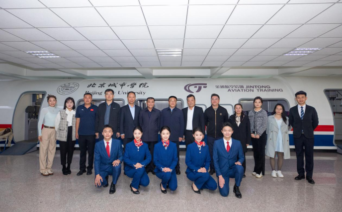 24日上午,刘校长一行在北京广慧金通教育集团的安排下,对北京城市学院进行了实地考察,对航空服务艺术与管理专业的校企模式进行了深度了解,现场观摩了该校航服专业学生的安全演示教学成果展示。