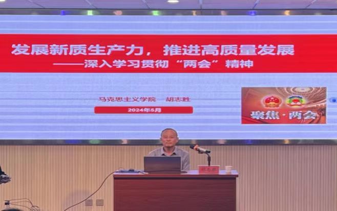 会上,胡教授从三个方面讲解两会精神及重要指示。一是2024年“两会”的基本概况;二是2024年经济社会发展总体要求及政府工作任务;三是新质生产力及其推动经济高质量发展重要意义。