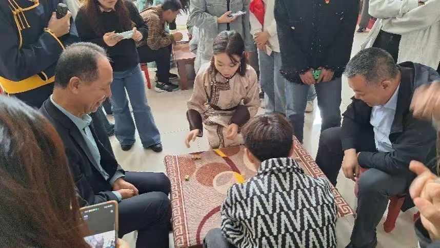 活动中,蒙古学学院学生热情地为我们分享了充满趣味的沙嘎游戏。他们详细介绍了沙嘎游戏的基本规则,让我们了解到这个传统游戏如何通过小小的羊拐骨,展现出智慧与技巧的较量。