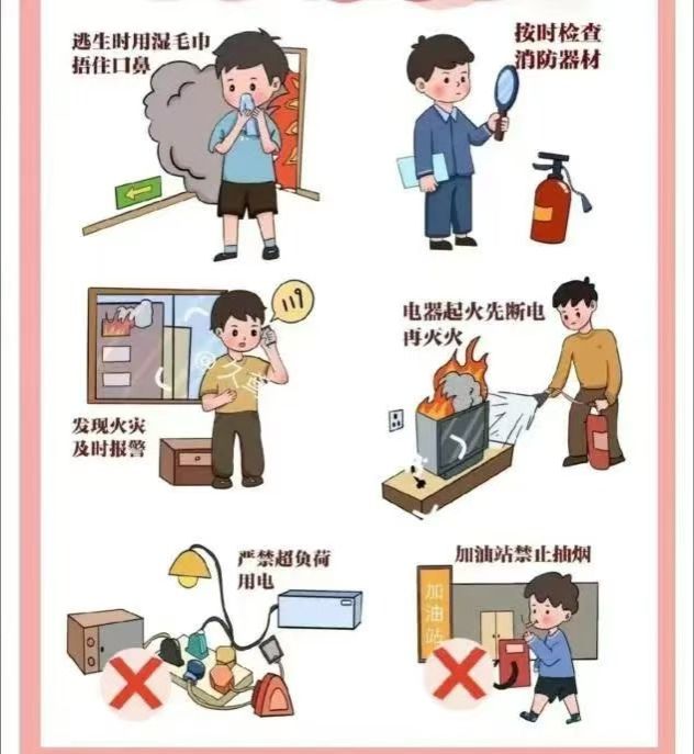掌握正确的疏散方法,如遇火灾时保持镇静,用湿毛巾捂住口鼻,低姿势快速撤离。